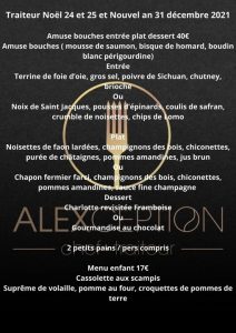 Découvrez nos différentes possibilités de menu de fêtes de fin d’année (menu 3 services)… Nous vous concoctons le menu que vous souhaitez pour égayer vos réveillons… Nous nous ferons un plaisir de cuisiner pour vous….Nous vous demandons de commander pour au plus tard le mardi 22 décembre pour Noël et le mardi 29 décembre pour le Nouvel An…