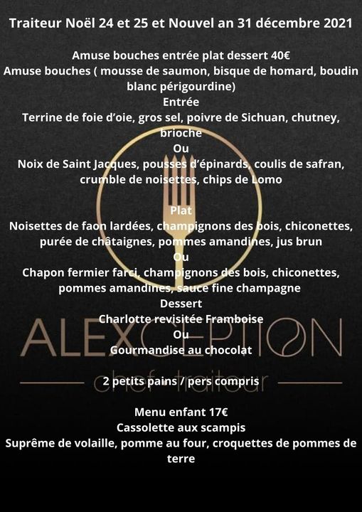 à alexception_restaurant@outlook.com avec vos coordonnées complètes.Vous trouverez les possibilités de compositions ci-dessous