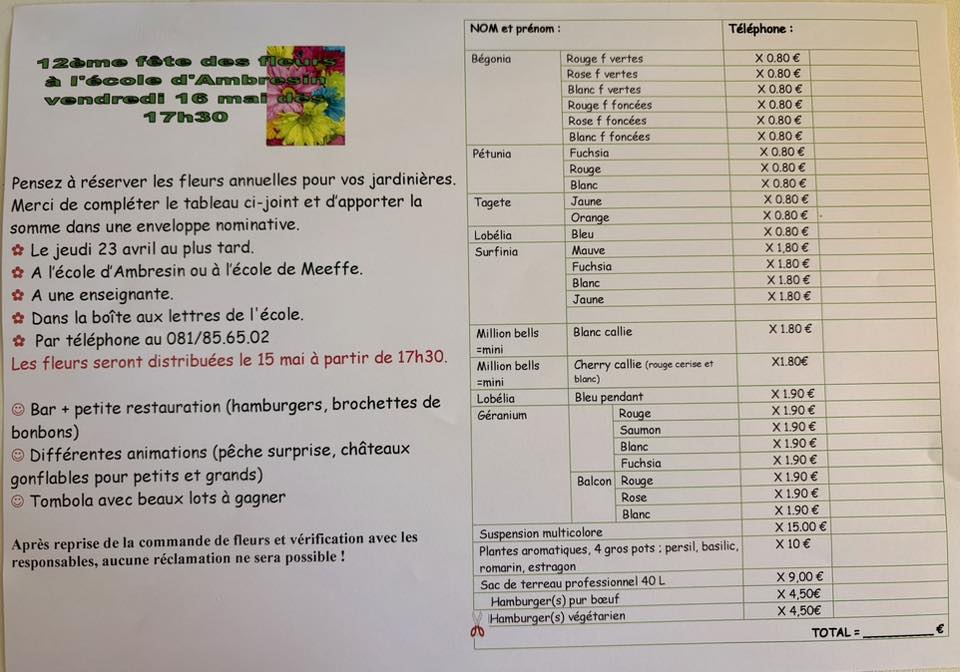 Marché aux fleurs à l’école d’Ambresin